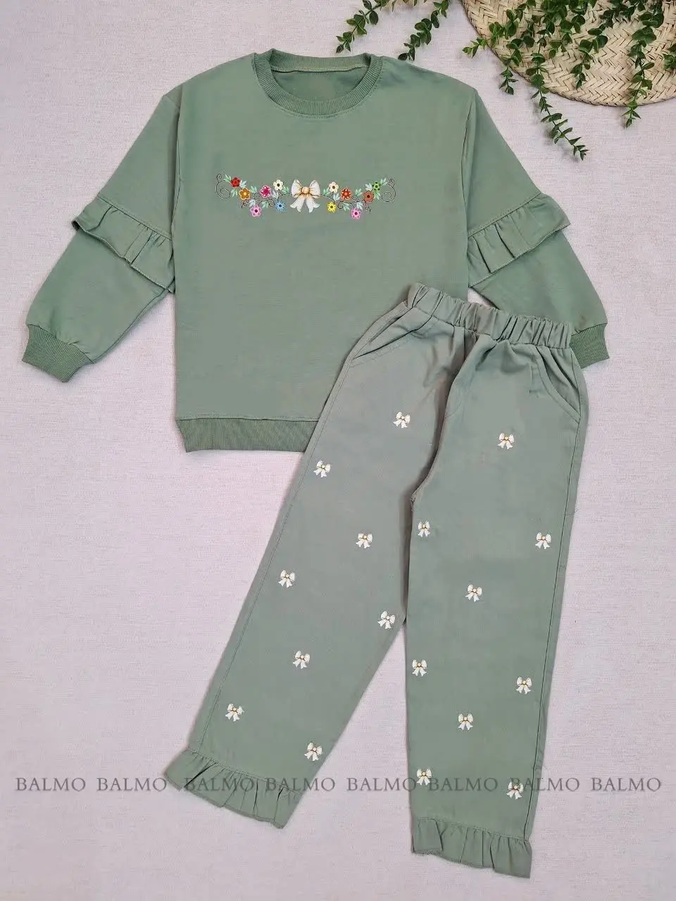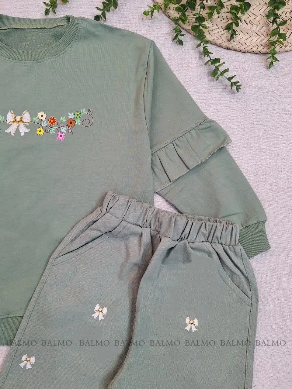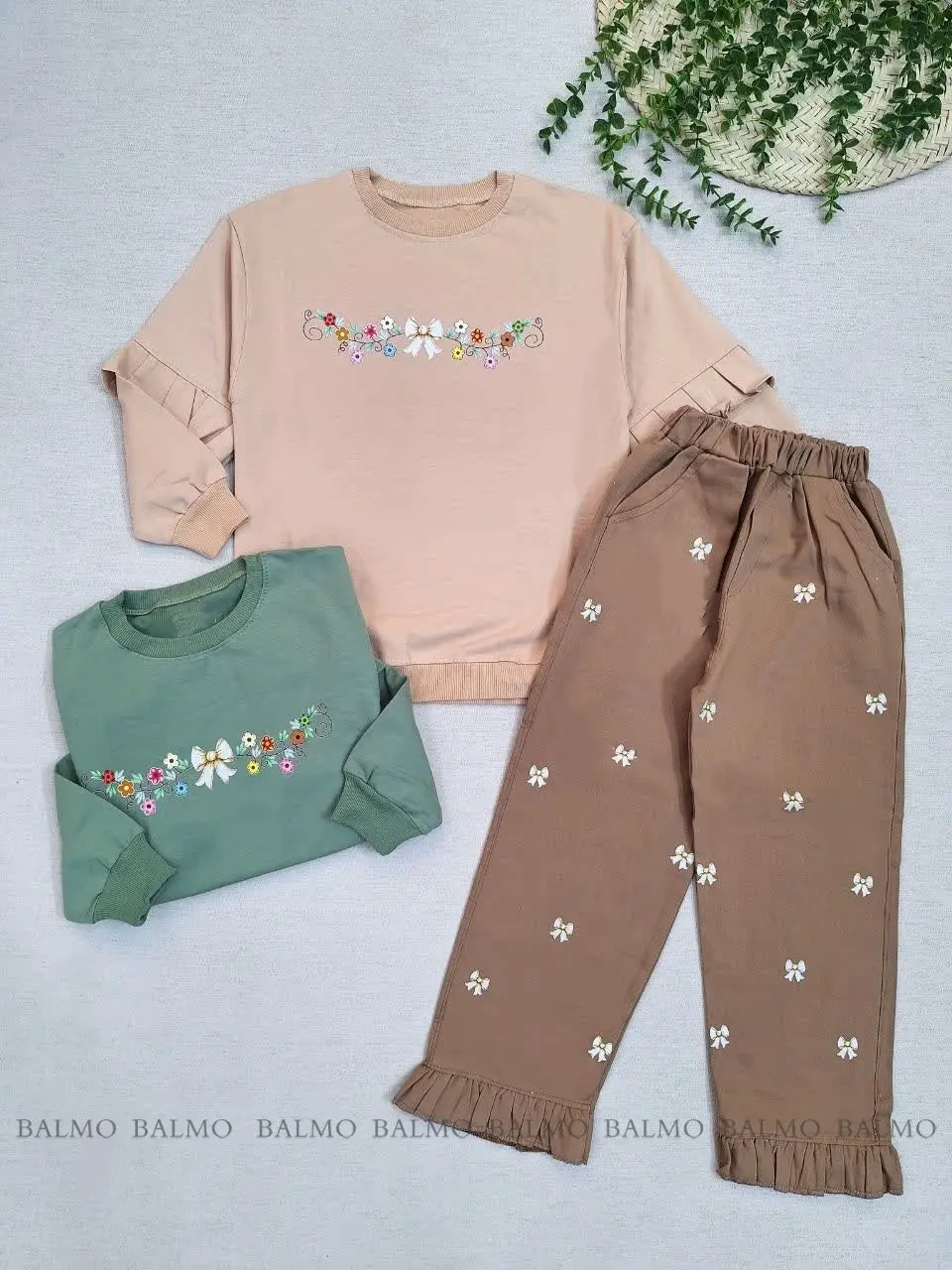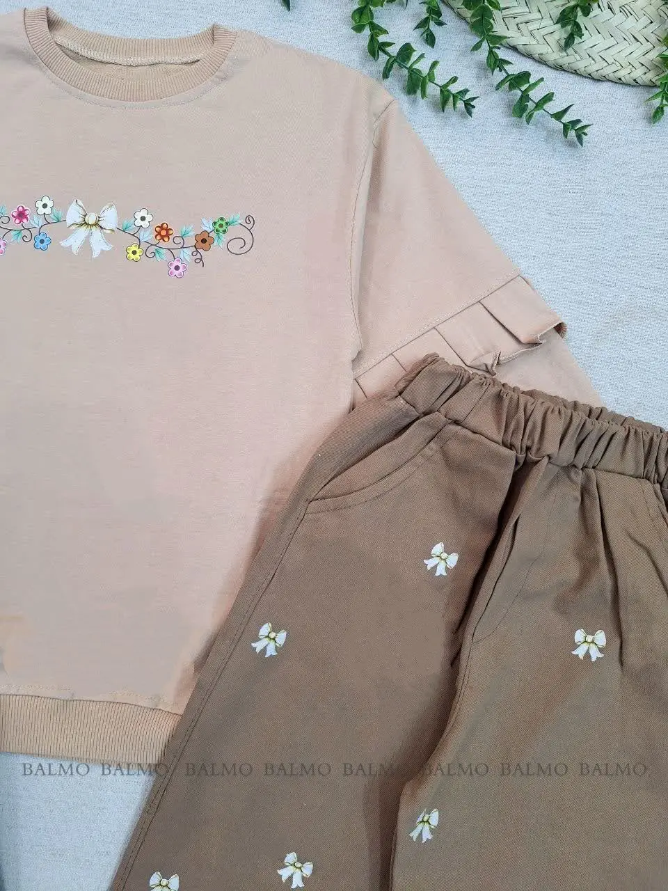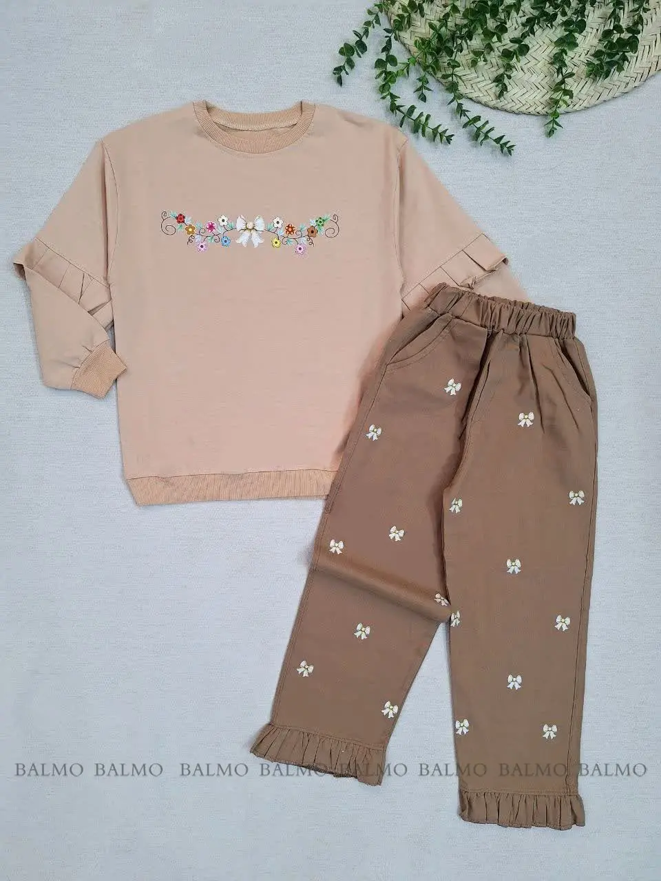 ست بلوز و شلوار طرح پاپیون طلایی